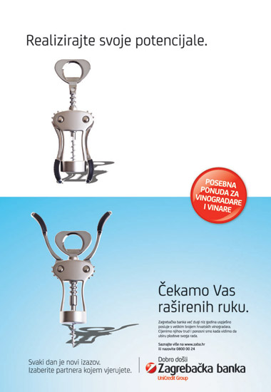 VadiÄep je nezaobilazan predmet u vinarskoj branši. Rastvoren komunicira dobrodošlicu u banku.