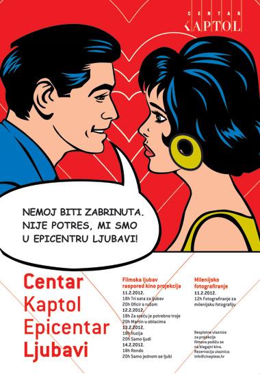 Dizajnerski oblikovana srca koja se šire kao valovi i vrlo prepoznatljiva stripovska ljubavna poza pozivaju na uzbudljive dogaÄ‘aje u Centru Kaptol.